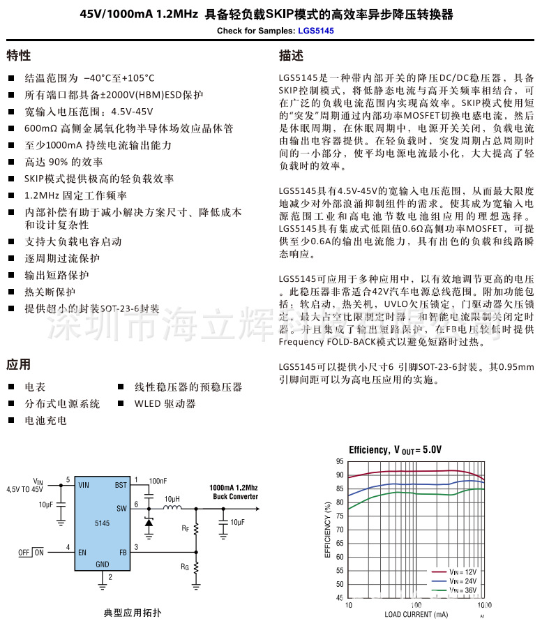 OC5864 是一款内置功率 MOSFET的单片降压型开关模式转换器。OC5864