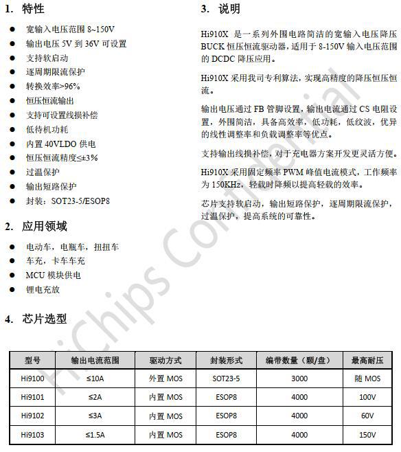 2 Hi7001 DC/DC BUCK降压 1.5A SOP8 100V/1.5A、共阳降压LED驱 动、65536:1高辉调光、PWM/模拟/分段调光