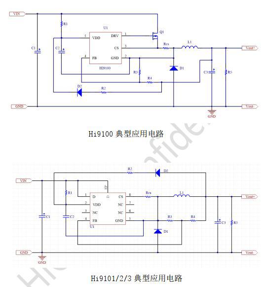 6 Hi7005S DC/DC BUCK降压 500mA SOT23-6 共阳降压LED 驱动、65536:1高辉调光、PWM/模拟/分段调光